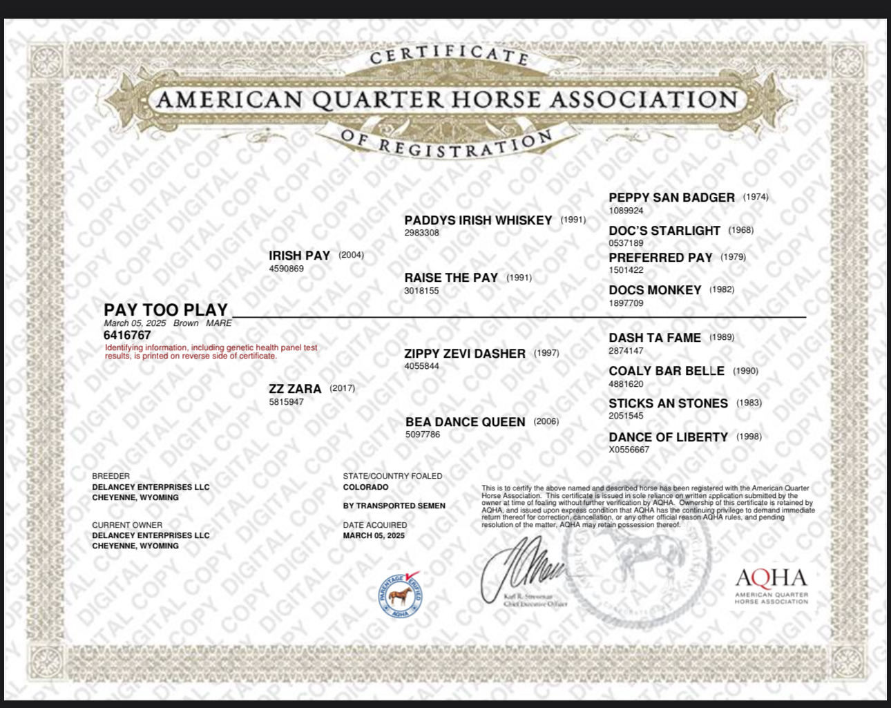 Sire’s Sire’s Dam
